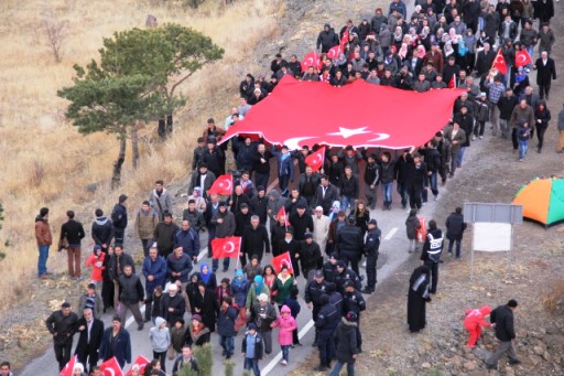 rzurum Valiliği öncülüğünde düzenlenen ve sivil toplum kuruluşlarının da desteğiyle Erzurumlular, ecdadına yürüdü. 1877-1878 Osmanlı- Rus Harbi’nin gerçekleştiği ve kahraman ecdadımızın anısına Erzurumlular tabyalara yürüyüş için sabah saat 06.00 sıralarında Karskapı Şehitliği’nde toplandı. Karskapı şehitliğini ziyaret edip dualar eden yaklaşık 15 bin kişi daha sonra 5 kilometrelik patika yolu yürüyerek tabyalara ulaştı. Burada dualar edilerek tabyalar ziyaret edildi.
