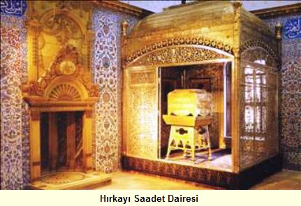 Bu arada Hırka-i Saadet öğle, namazından iki saat kadar önce, Has Oda vazifelileri tarafından gümüş sandukasıyla birlikte sehpanın üzerinden alınarak, birbiri üzerine konulmuş sim sırmalı, işlemeli yastıklar üzerine bırakılır, daha sonra da Kur’an-ı Kerim okumaya burada devam edilirdi.