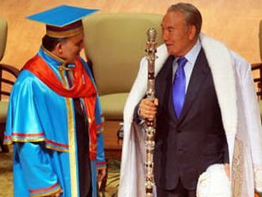 Gül ve Nazarbayev’in, Kazak-Türk üniversitedeki Türk Dünyası Müzesi’nde incelemelerde bulunulmasının ardından, Cumhurbaşkanı Gül için düzenlenen fahri profesörlük unvanın verilmesi törenine geçildi.